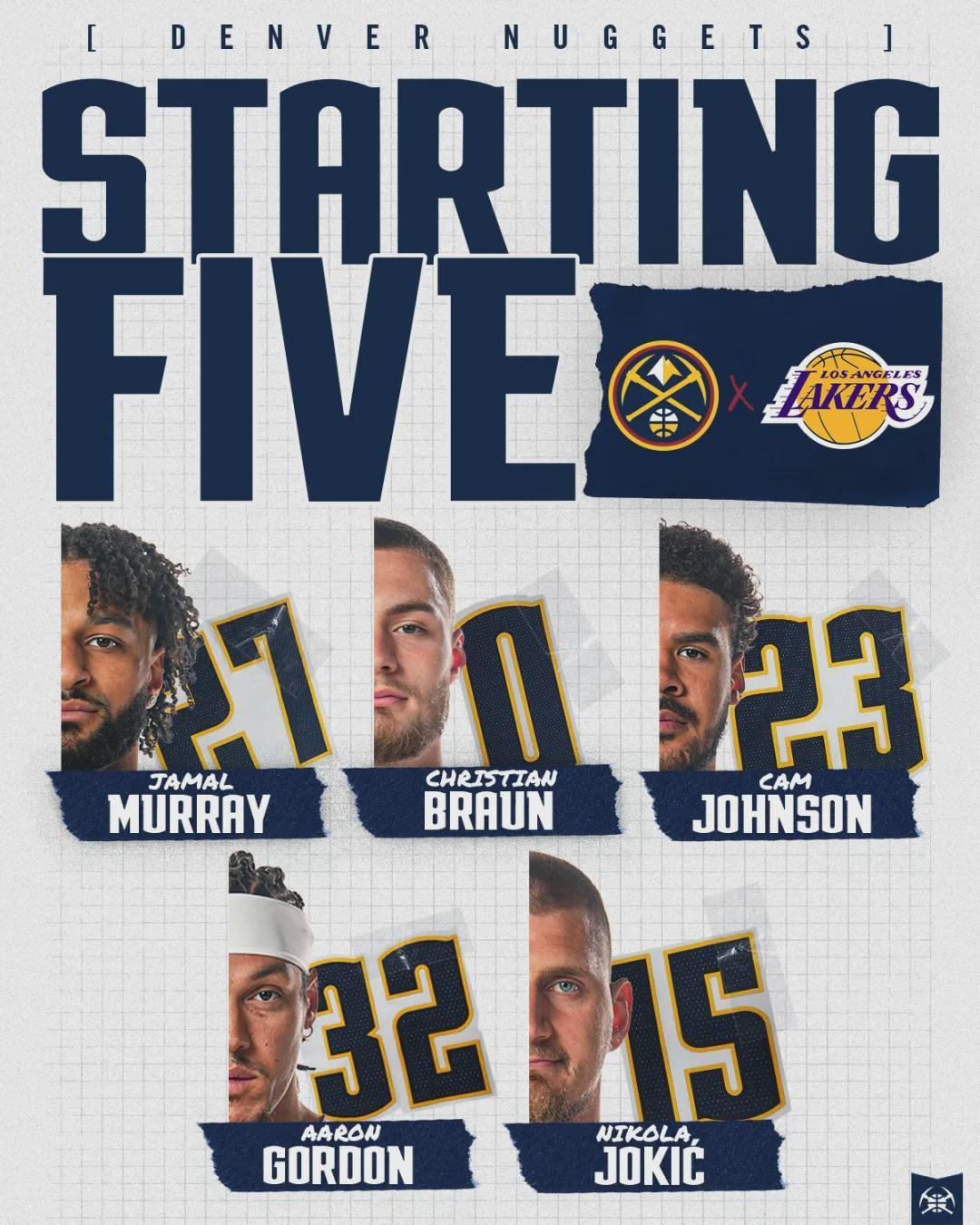 掘金弃用瓦兰直接启用小个阵容,穆雷上半场8中1仅得4分4失误,湖人一度拉开到17分。眼看比赛要花,约基奇只能重新登场。第二节卡梅隆-约翰逊命中两记三分,湖人也不敢一直夹击约老师了。第二节后半段,掘金追到10分左右。