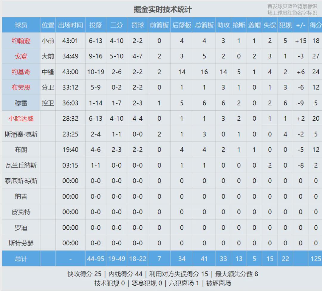 掘金首发:穆雷、布劳恩、卡梅隆-约翰逊、阿隆-戈登、约基奇。湖人首发:东契奇、里夫斯、斯玛特、詹姆斯、艾顿。全明星之后进攻效率,约基奇和东契奇都是120.2,并列联盟第9。大家猜猜联盟第1是谁?伦纳德(127.1)!